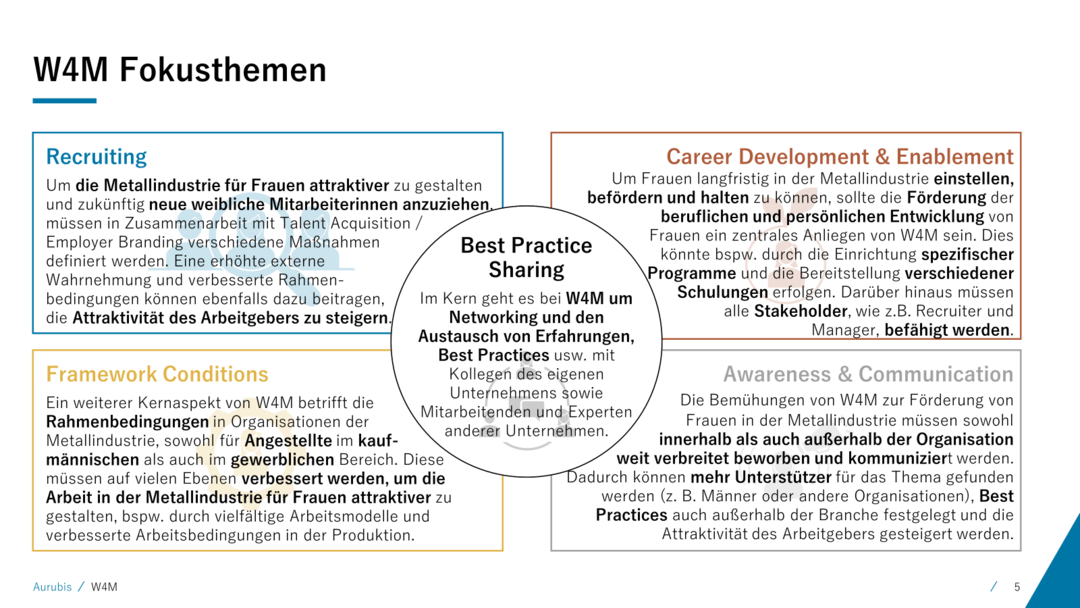 Im Rahmen der Veranstaltung finden Sessions zu den vier Women4Metals Fokusthemen statt. Bitte wähle die Focus Session aus, an der du am liebsten teilnehmen würdest, sowie deinen zweiten Favoriten.
